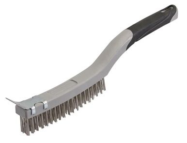 Wire brush with stainless steel 30mm bristles and steel scraper. Soft-grip rubber overmould grip handle. Length 350mm
